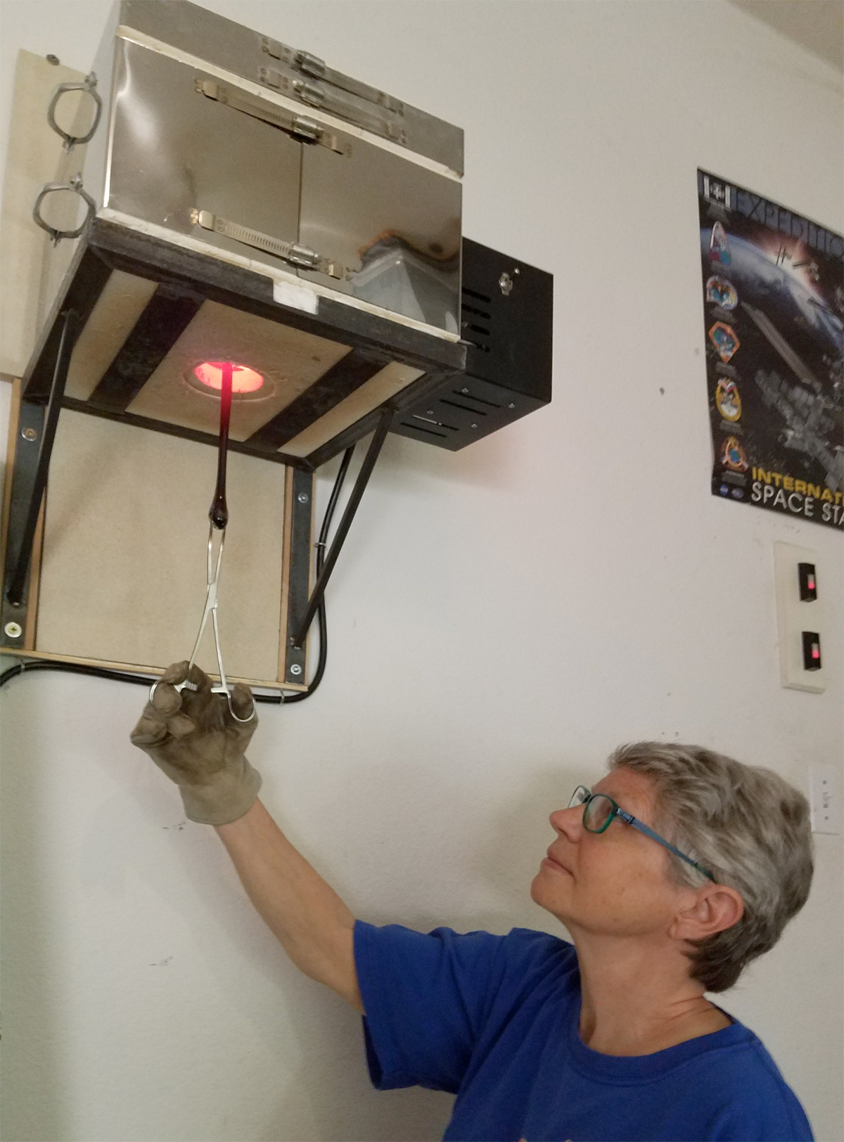 I was drawn to stained glass because of its rich colors and textures, and its ability to make light dance. It can be your friend, giving you the opportunity to create beautiful works of art; or your enemy - not performing to your expectations, and sometimes wounding in the process (I keep the workshop well-stocked in bandages). Glass gives me the ability to create in 2 dimension or 3. It can be cut, shaped, fused, molded, and sculpted in a flame. It's solid, yet flows, even at ambient temperatures given enough time. Some of my inspiration comes from my background in science and math, which can be seen in Penrose patterns, fractals, and space objects. But mostly, I just like to play and try new things...some things work and some things don't...if they don't, I try to figure out why, and use it to make something else.
